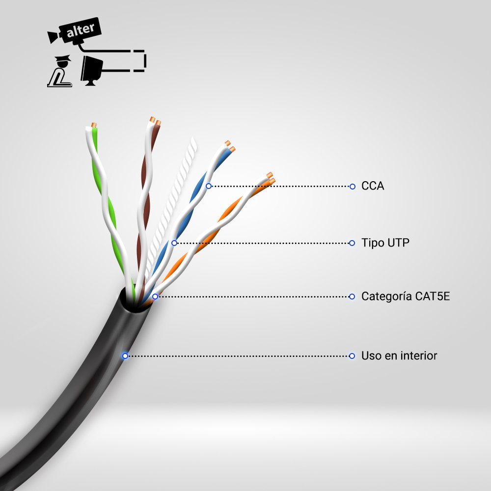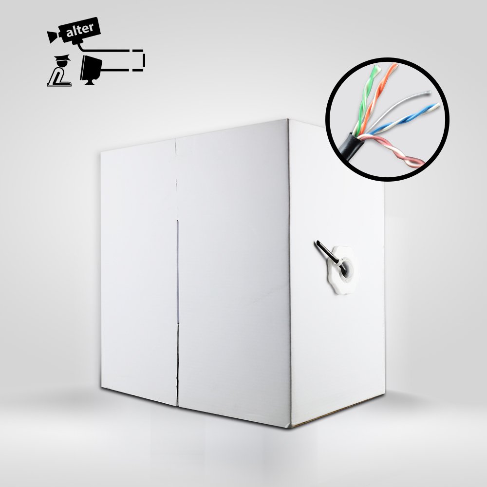 Cable Ethernet Cat5e UTP (par trenzado sin blindaje) CCA (aluminio revestido de cobre), es calibre 24 AWG en caja de extracción fácil de usar es ideal para su instalación de red. Contiene 305 mts color negro, cable sin blindaje; está libre de conectores, dando al usuario la libertad de personalizar la longitud, el cableado y la aplicación.